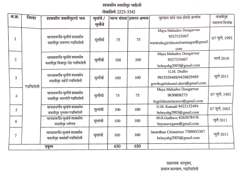 2. संबंधित गृहपाल , मागासवर्गीय मुला-मुलींचे शासकीय वसतिगृह
