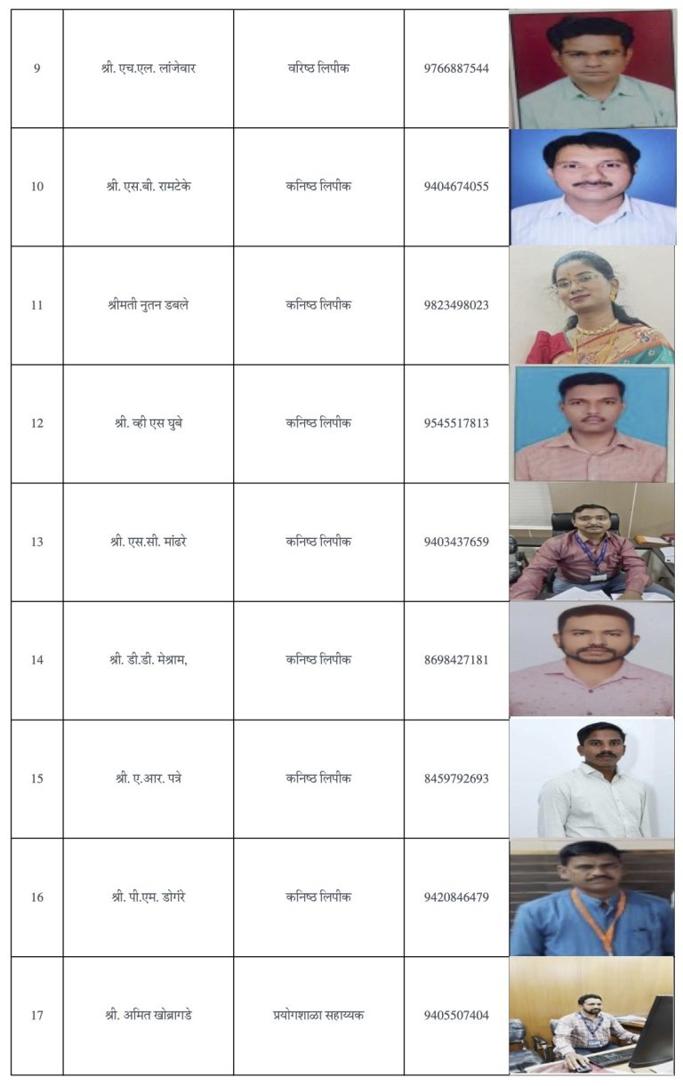 सहाय्यक आयुक्त समाज कल्याण गडचिरोली कार्यालयातील अधिकारी/कर्मचारी माहिती